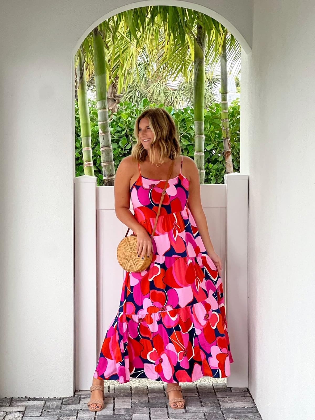 Amazon Maxikleid (entspricht der Größe, trägt Größe S) // Rattan-Clutch // Ähnliche Absätze //
